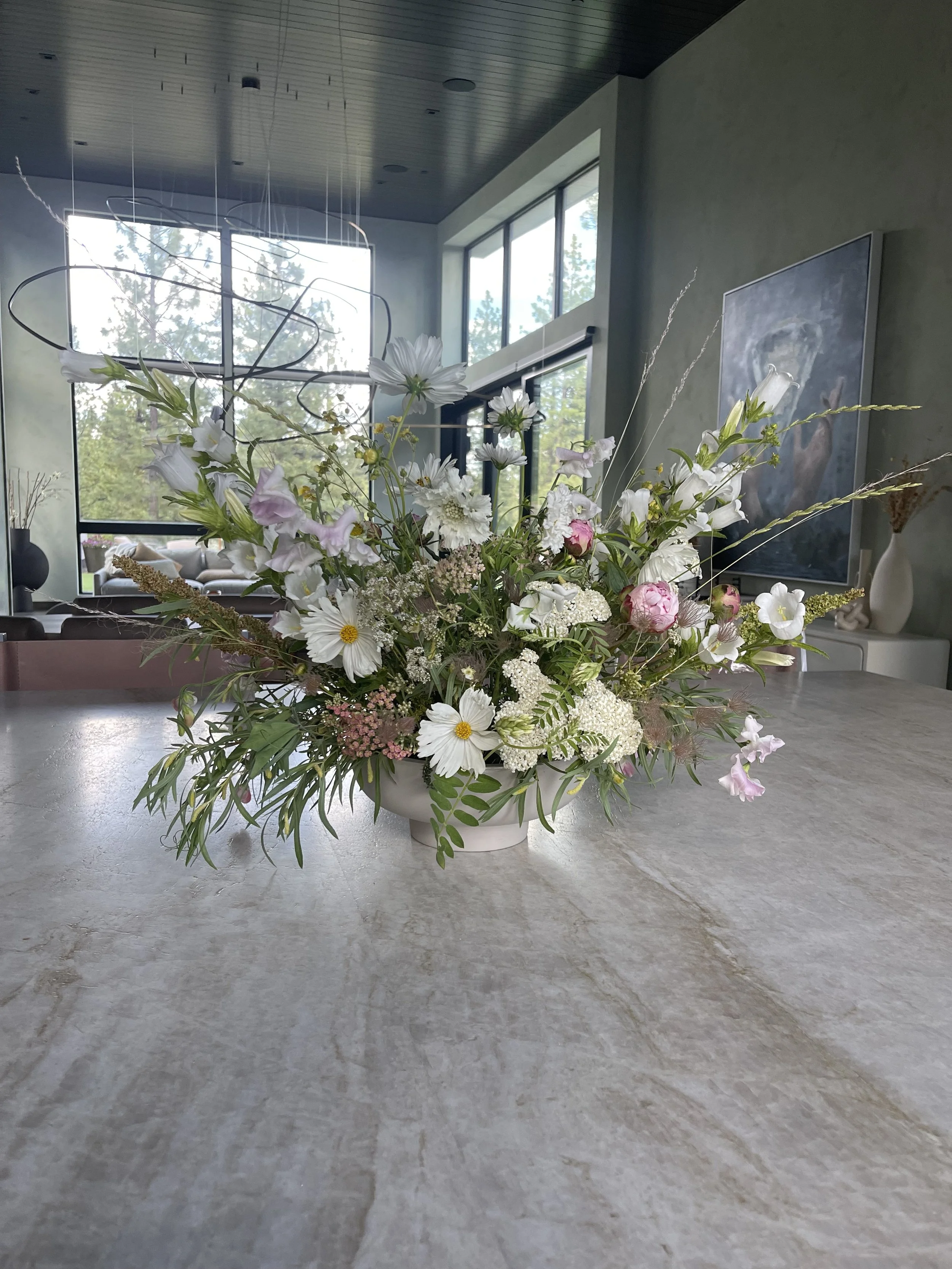 Local, organic and ethically foraged flowers are the focal point of my work. Designing with what is seasonally available inspires unique, bioregional expressions of flowers and their unique an ephemeral beauty. Sustainable techniques and materials are always utilized to ensure full compostability and minimize impact of production.